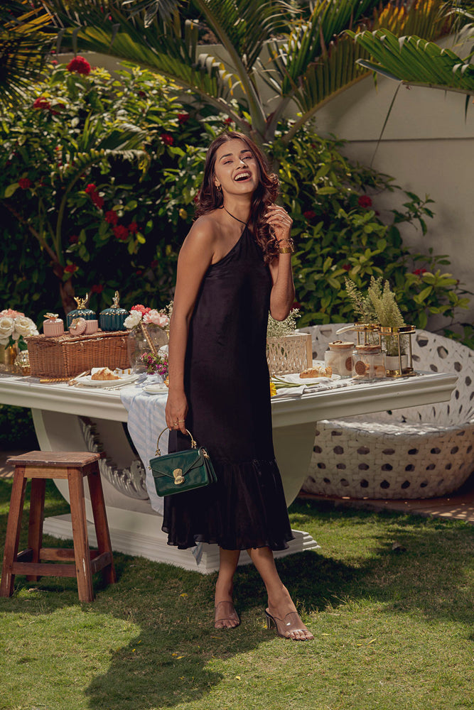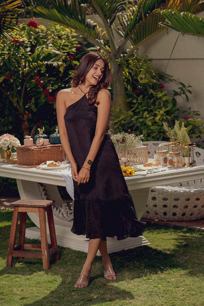 • You will receive a black chinon chiffon dress.