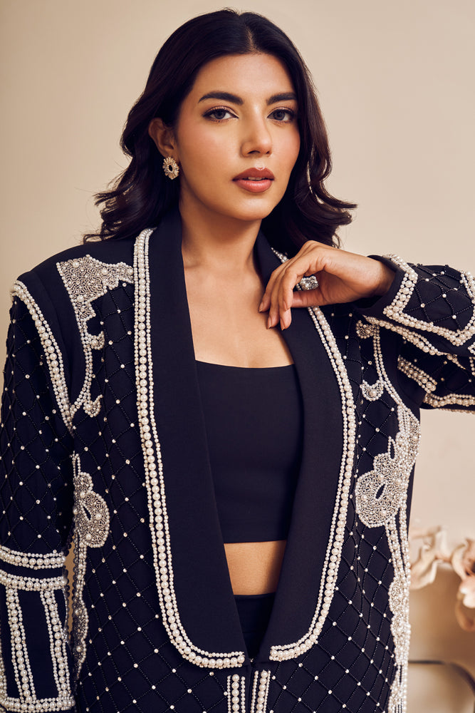 Slaying in black never goes out of style, especially when it's a killer blazer look! Put in some pearls and this elevates it from just office to events and parties too!