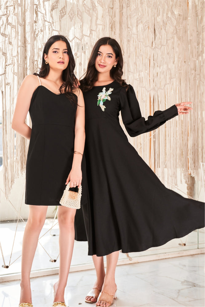 • You will receive a black moss crepe dress