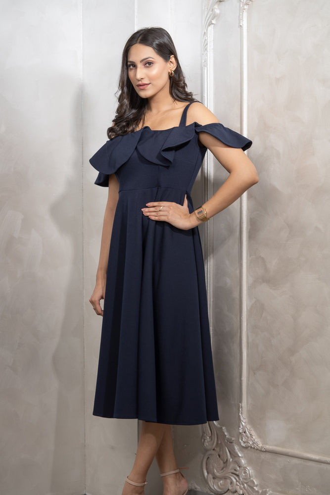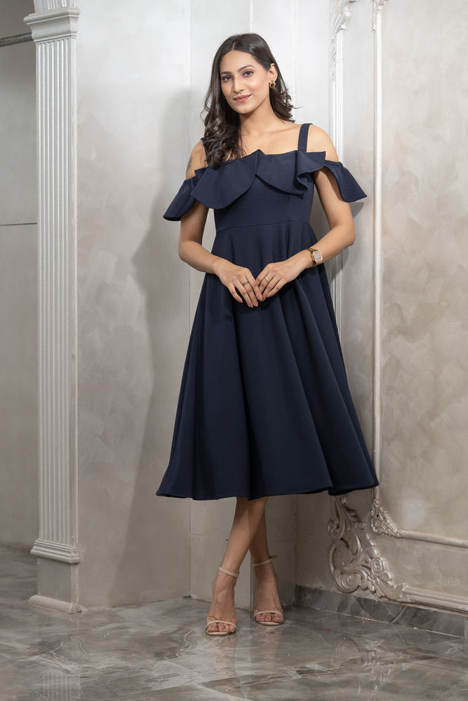 • You will receive a navy blue moss crepe dress.