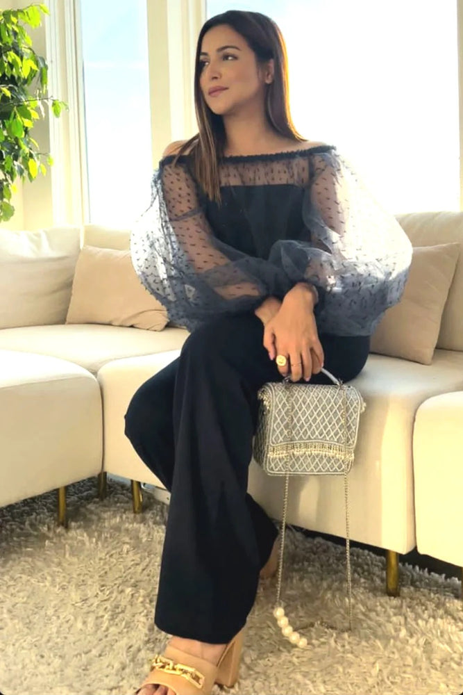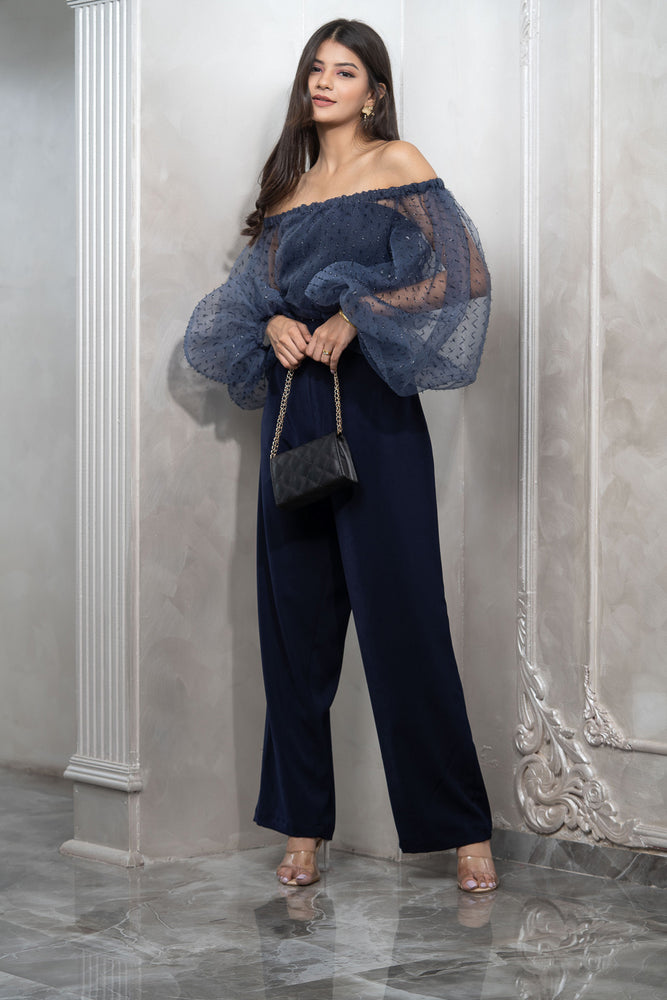 • You will receive a navy blue moss crepe co-ord set (Top + pant) and a moss crepe inner.