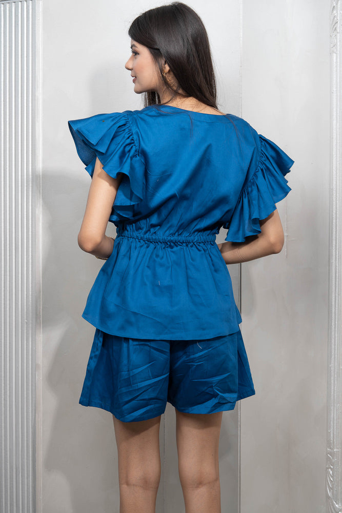 • You will receive a teal blue cotton co-ord set ( Top and shorts)