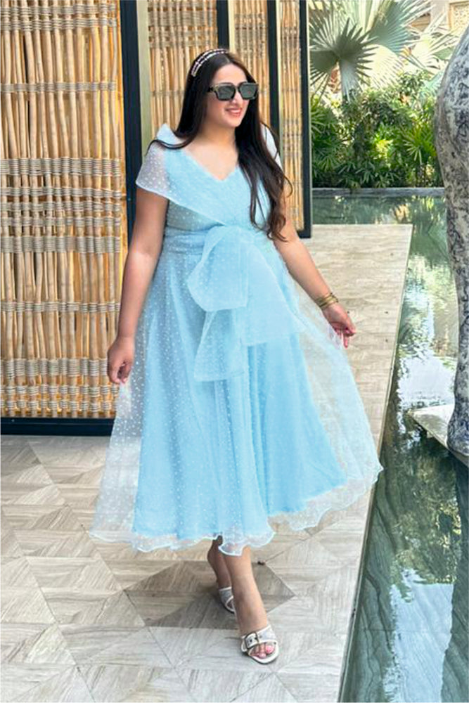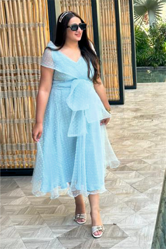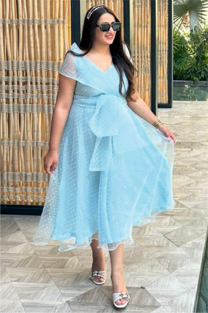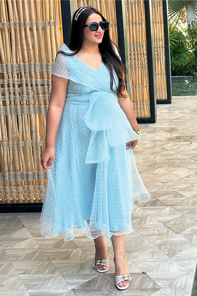 • You will receive a blue dotted textured organza midi dress