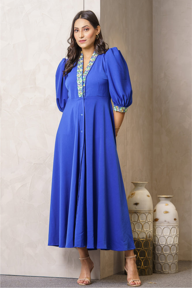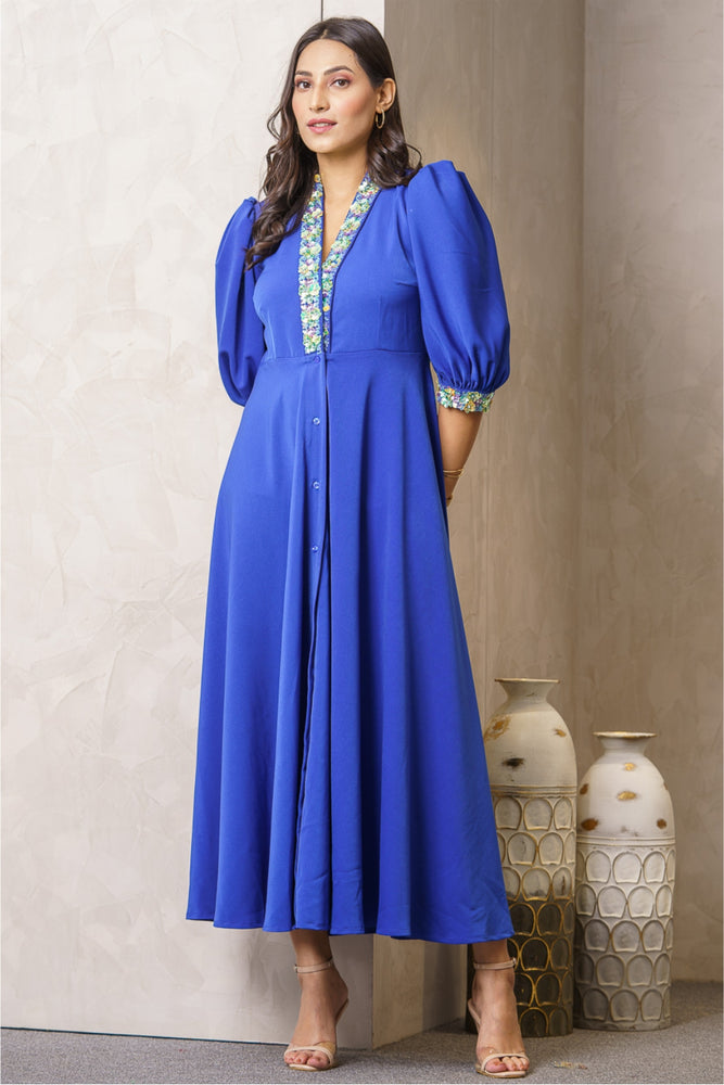 • A-line dress • Front open button down dress • Tailored fit • Midi dress