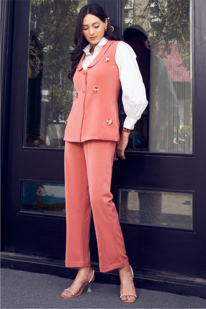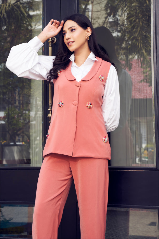 • Sleeveless Blazer with embellishments scattered in the front
