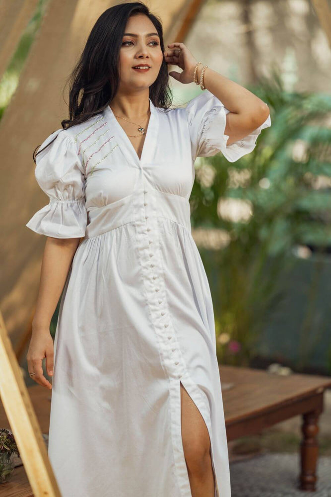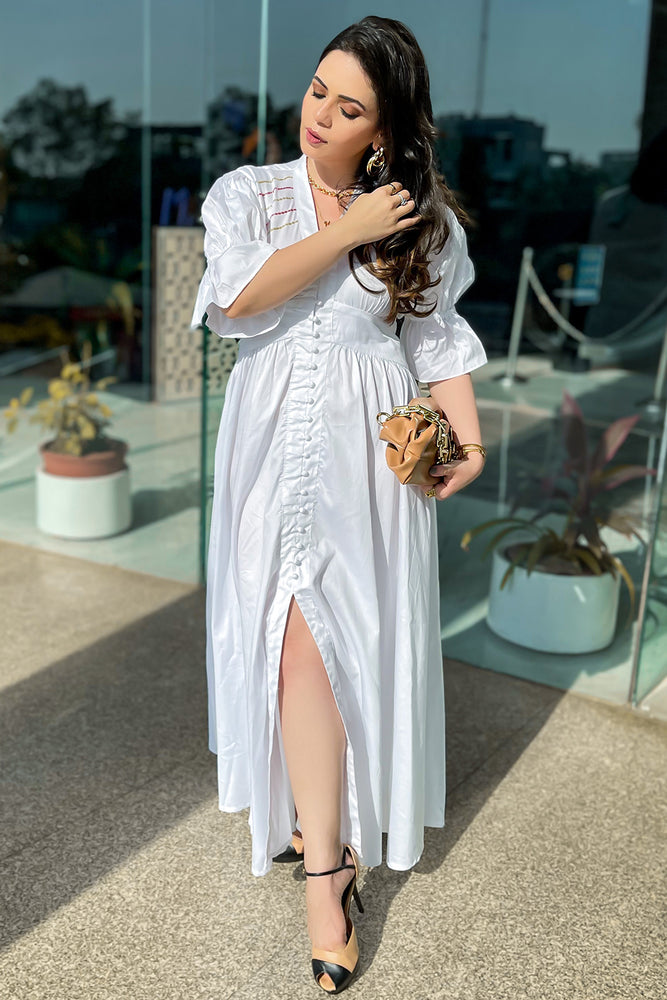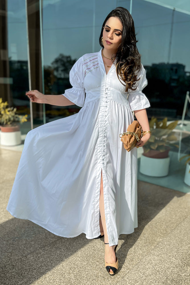 • Details: Cotton Midi dress ,Front Open , Colorful Sequin Lines