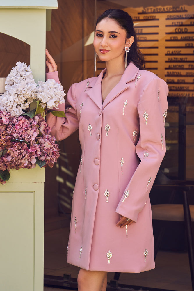 Feel fabulous on any workday with this mini blazer dress! Embellished beautifully with delicate pearl and stone handwork, pair this one up with long statement earrings for a gorgeous look!- Delivery time within India - 10-15 business days.