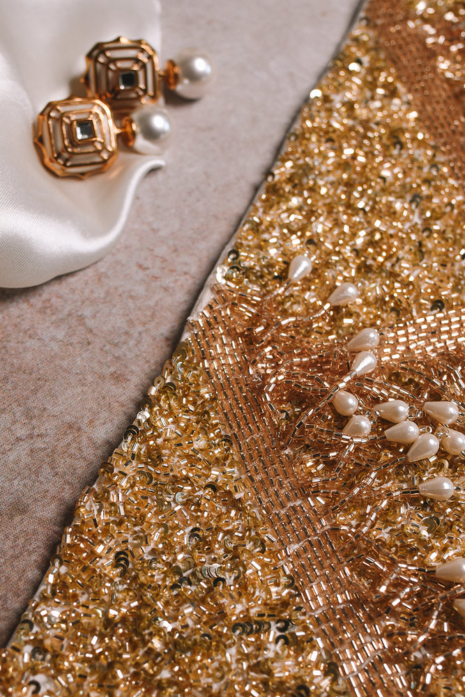 Gold and pearl tassels abstract belt with gold cut dana, sequence and poth cluster