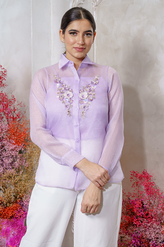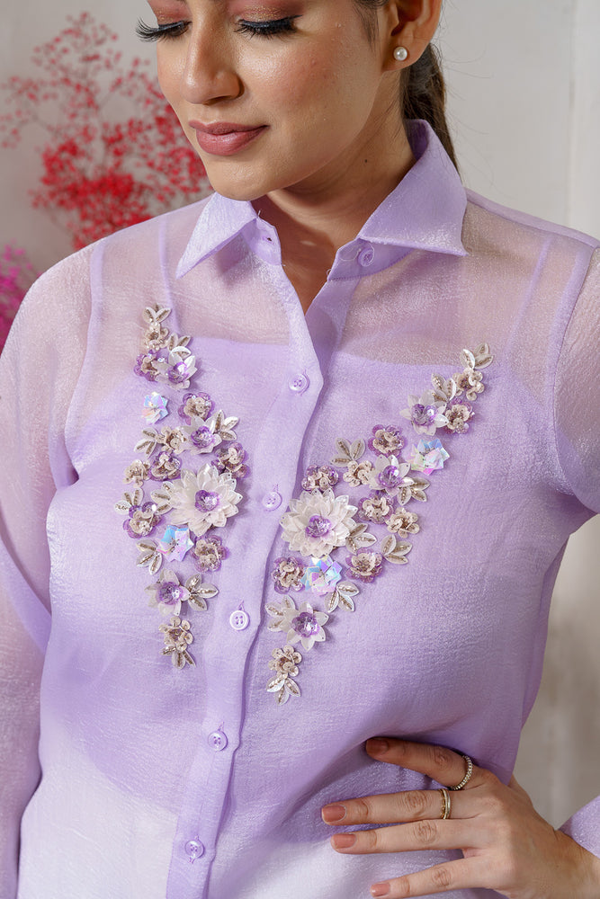 • You will receive a lavender textured organza shirt with a shantoon inner.