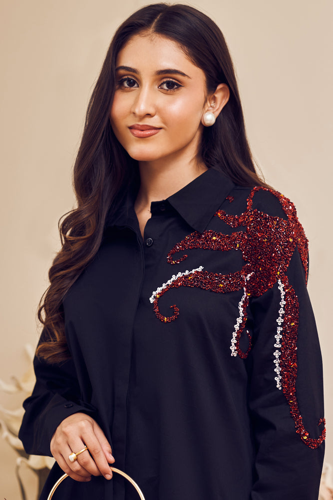 The quintessential collared shirt you can never go wrong with! It's bold yet beautifully embroidered patch turns it into a limelight stealer effortlesslly.- Delivery time within India - 10-15 business days.