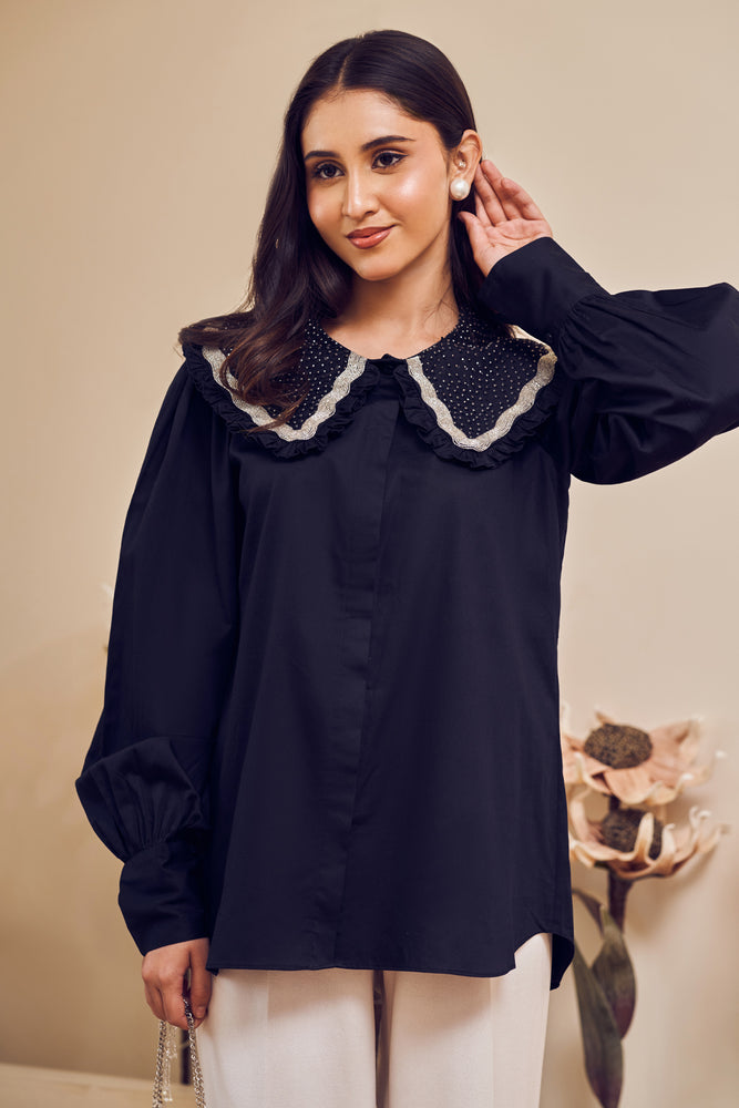 Puff sleeves and star studded collars - our black button downs are never boring! Easy to style, it's the first thing you should pack for your next vacay!- Delivery time within India - 10-15 business days.