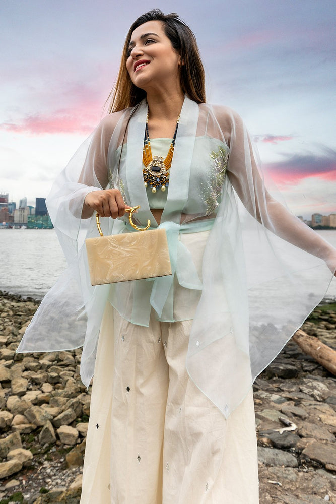 • Details ; Sheer Kaftan With Sequin and Peral Work On Front