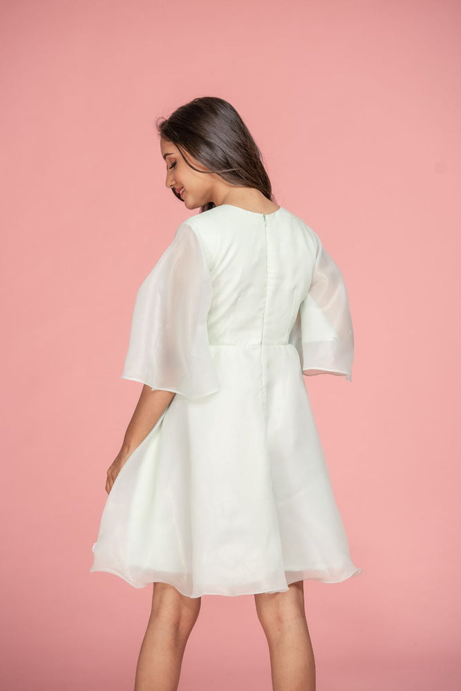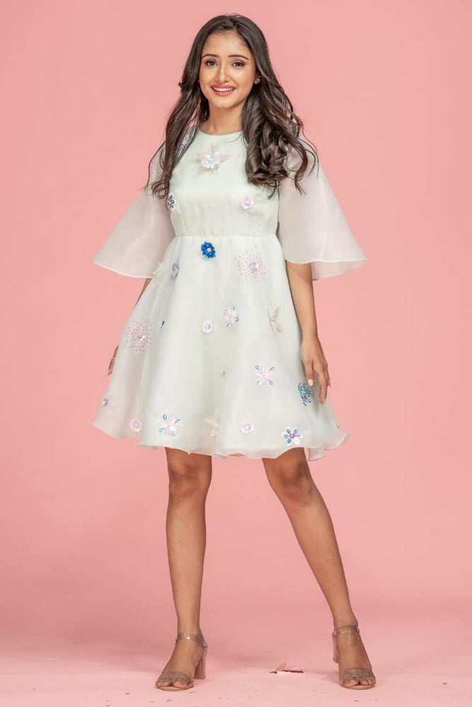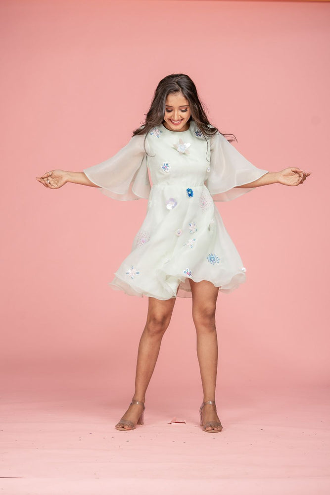 • Details : Net Mini Dress With Baloon Sleeve And Embelished All Over