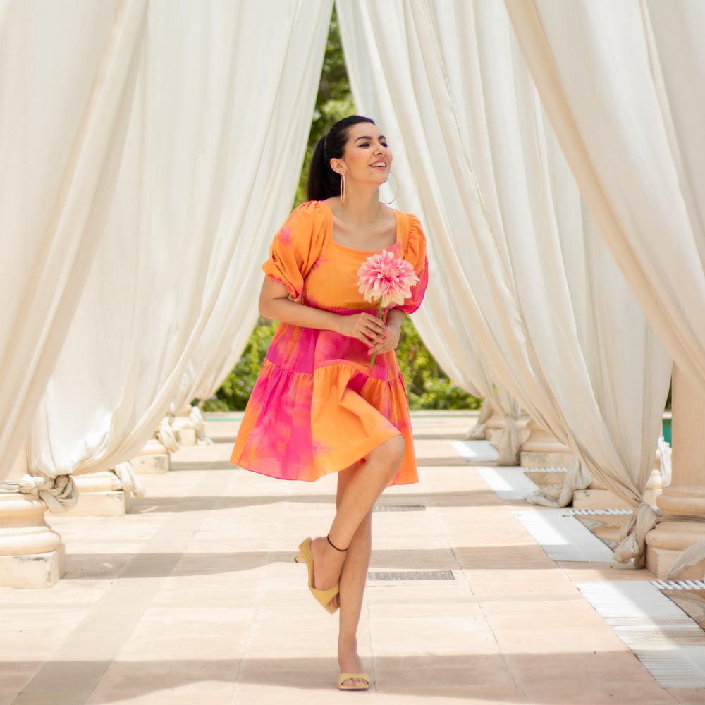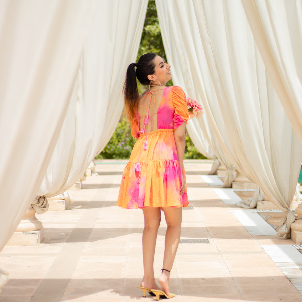 Mini Dress With Back Open & Two Layer Gather FlareHandDye - Yes