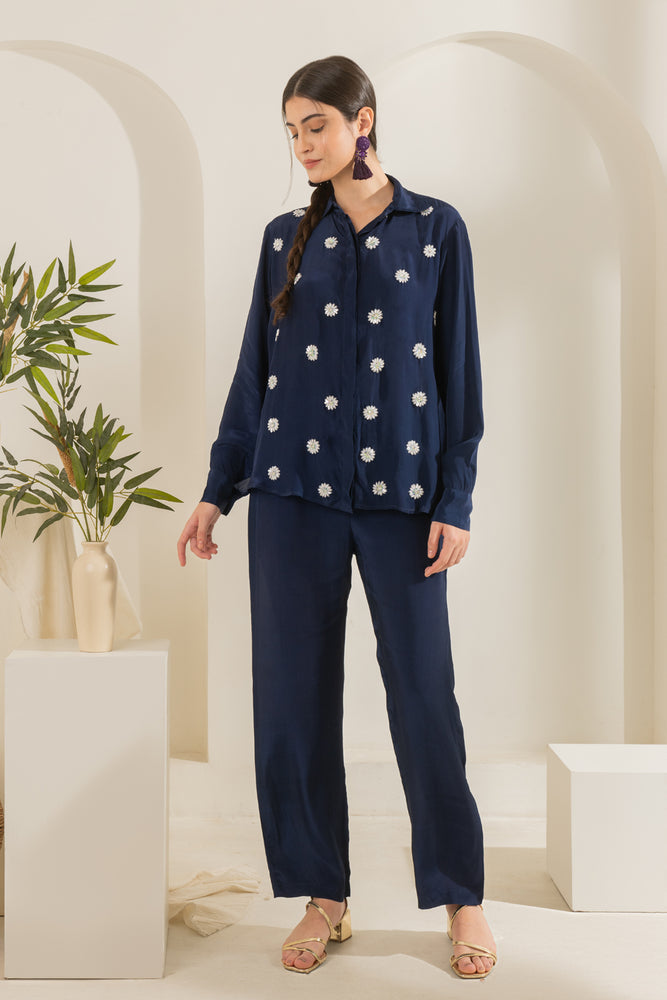 • Double placket • Long sleeve • Straight fit pants • Tailored fit