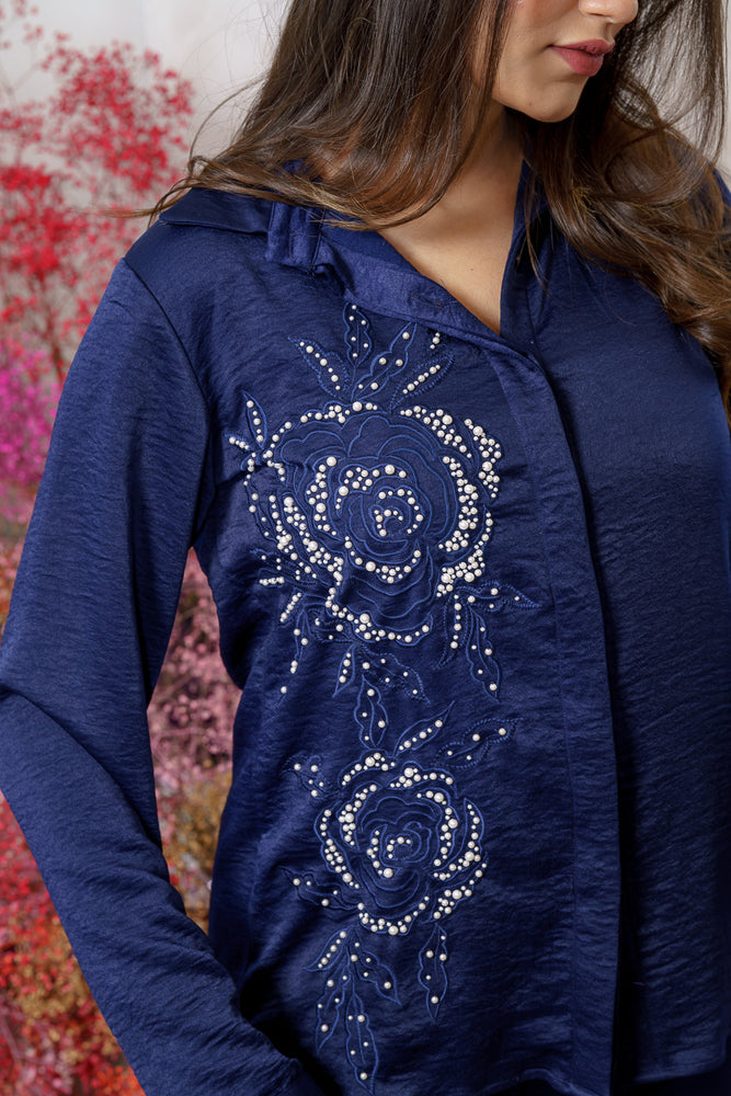 • You will receive a navy blue viscose shirt and a pant