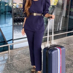 Details : Puff sleeves top with pockets paired with pants