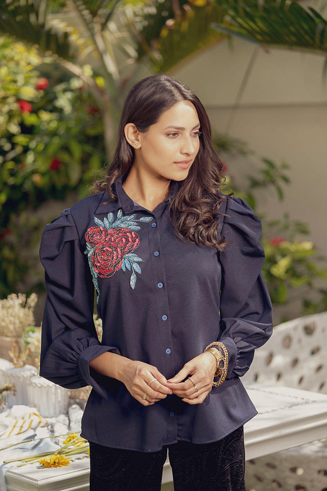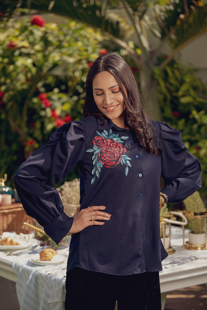 • You will receive a navy blue moss crepe shirt.