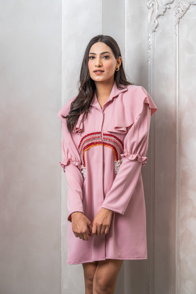 • You will receive a pink moss crepe dress.