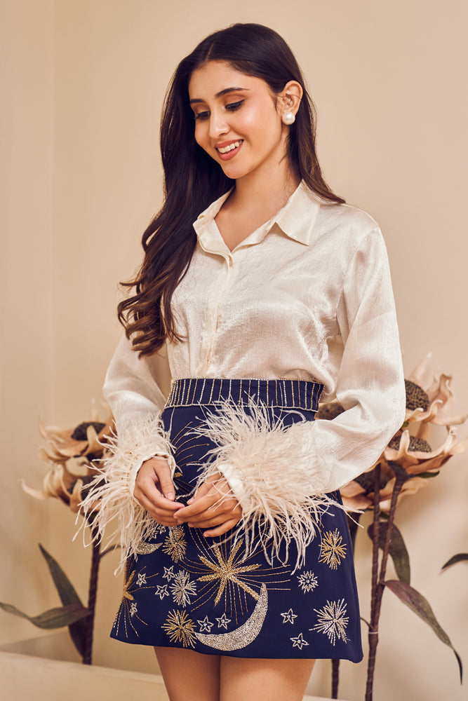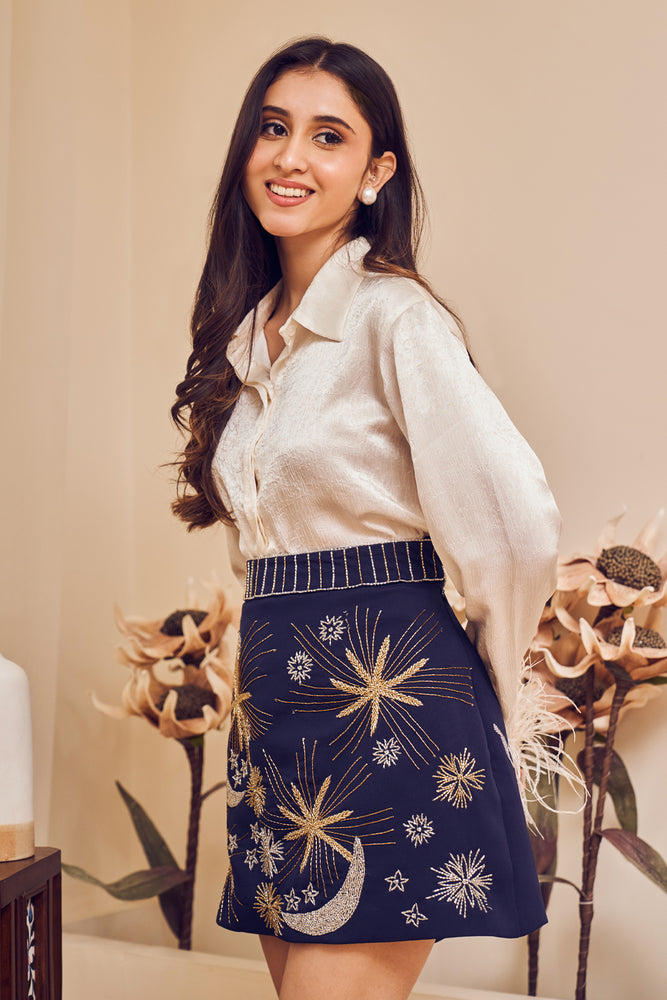 The star of the collection - our Remi Skirt, literally! A night sky on our skirt the twinkle on it is equal to the stars in our night sky!- Delivery time within India - 10-15 business days.