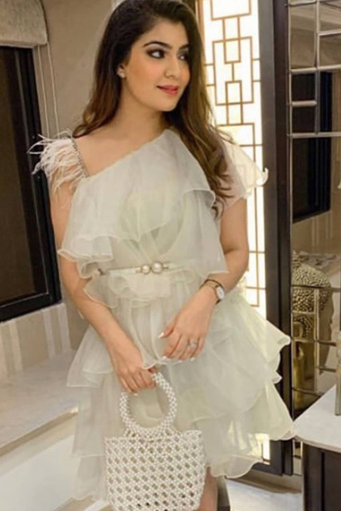 • Details - Ruffle Mini One Off shoulder Dress With Feather Strap