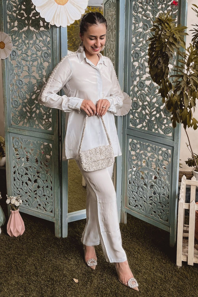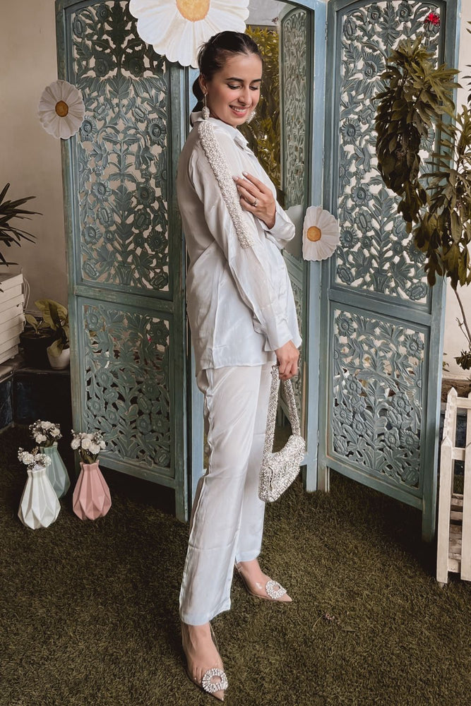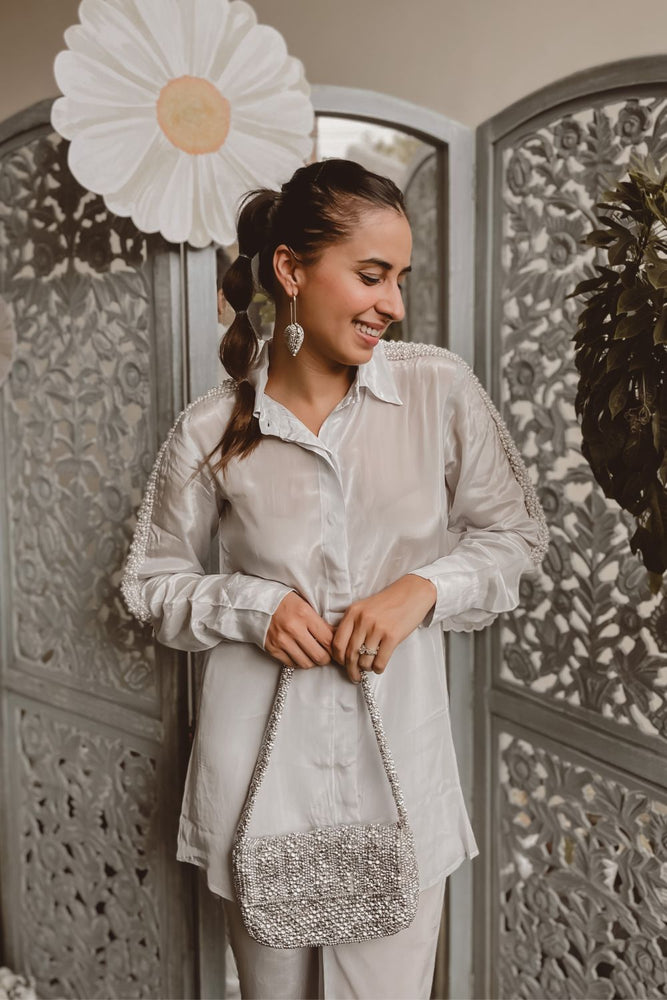 Sania Chadha In Grey Embellished Oversized Shirt With Pants