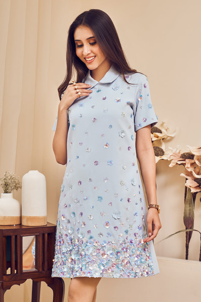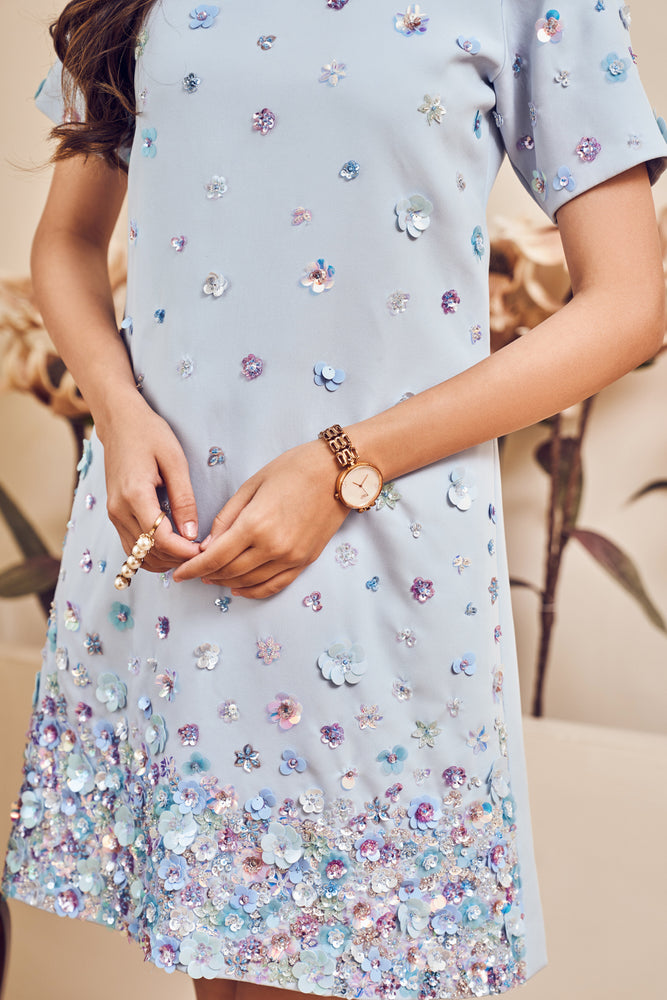 Introducing the ever-so-enchanting floral shift dress! From its charming short collars to the abundance of embroidered flowers cascading down, this above-the-knee pastel stunner is a garden of delight to wear and to flaunt.- Delivery time within India - 10-15 business days.