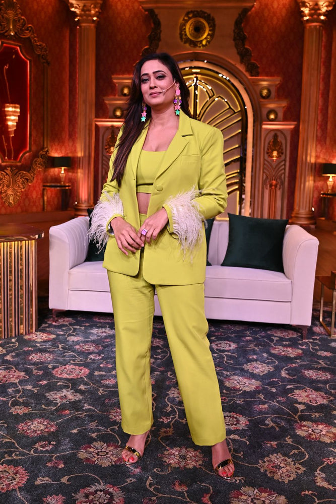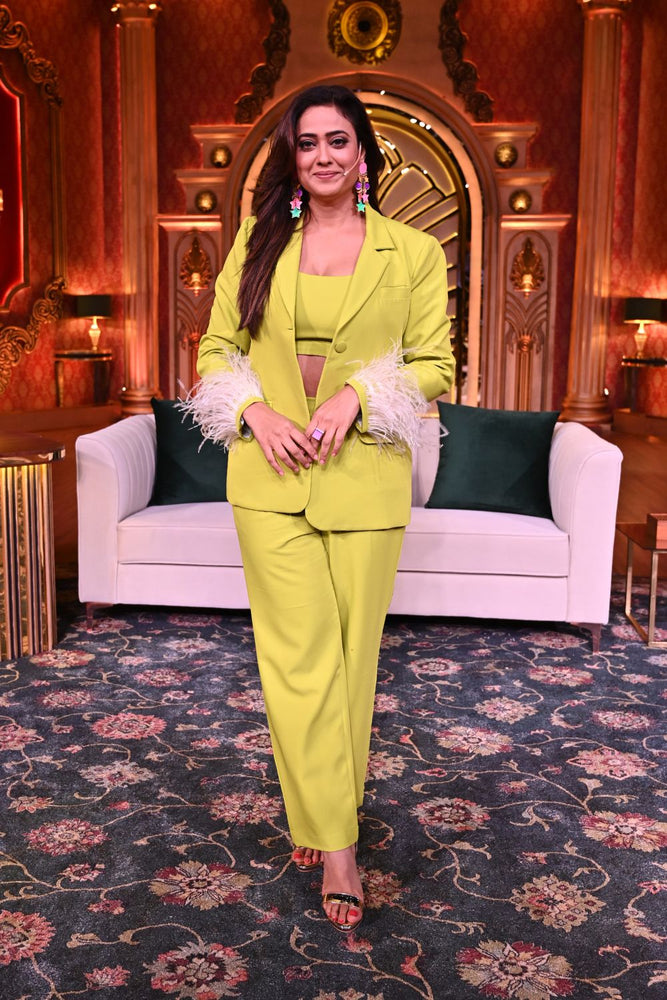 A blazer to make you pop with some whimsical feather detailing near the cuff! This is the one to choose when you need just a little bit of extra!- Delivery time within India - 10-15 business days.