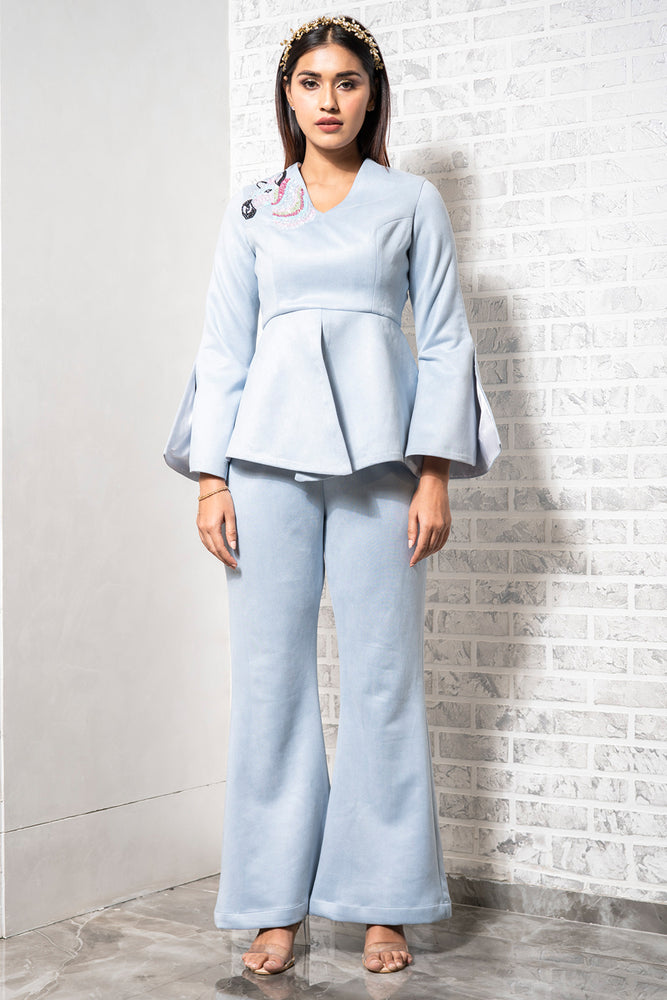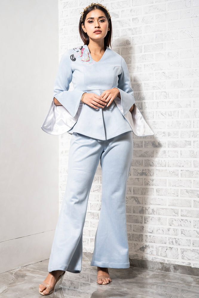 • Details : Ballon Sleeves Shirt With Sequin Work Patch with Pants