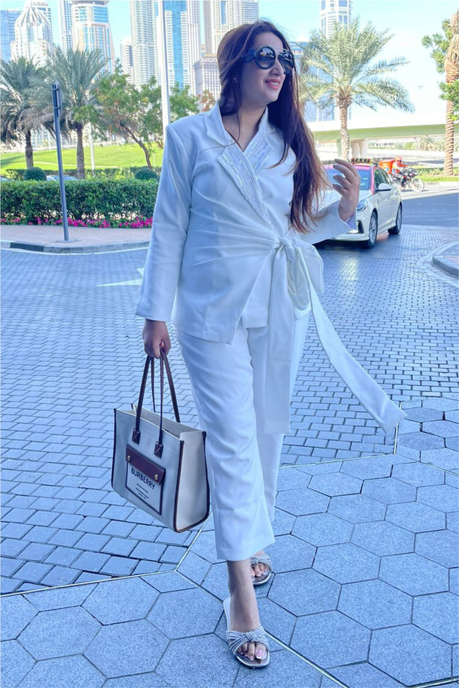 • You will receive a white moss crepe blazer and a pant