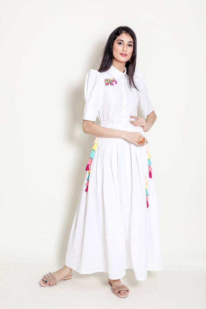 - MULTICOLOURED TASSELS ON DRESS SIDES